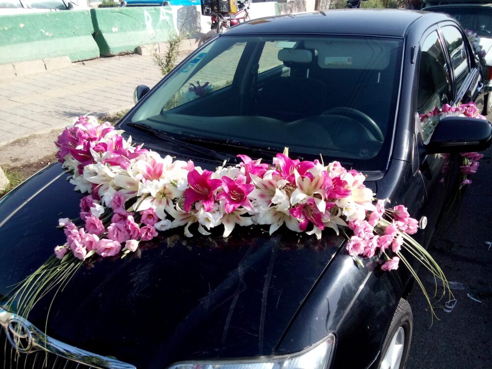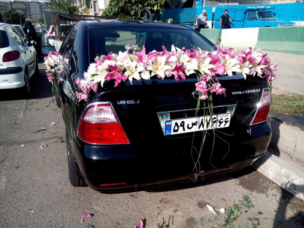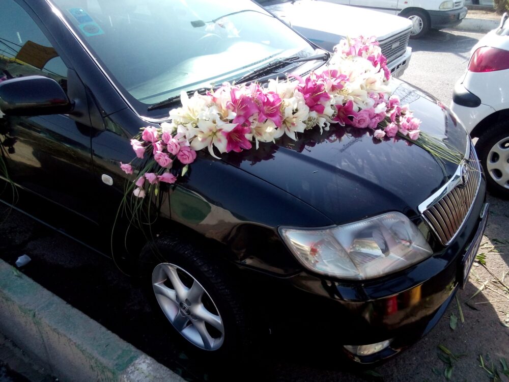 گل ماشین عروس تویوتا کرولا کد ۶۱۷ طرح ریسه جلو و عقب و توپی درب